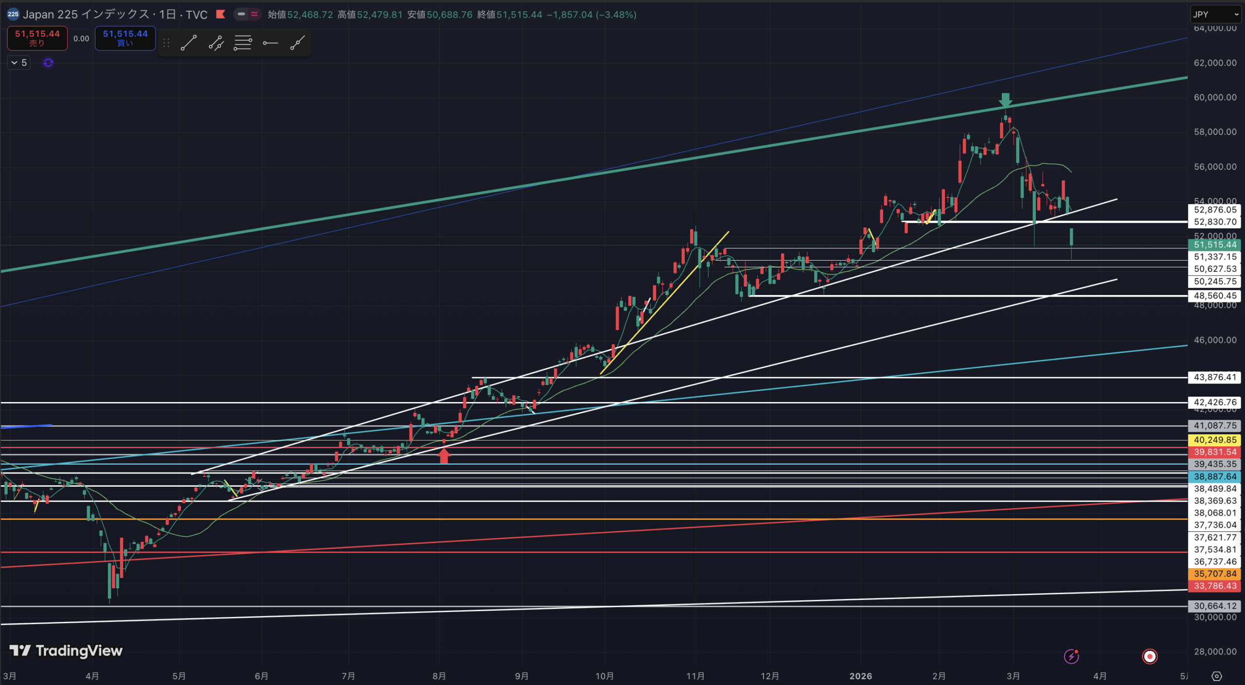 日経平均日足です。