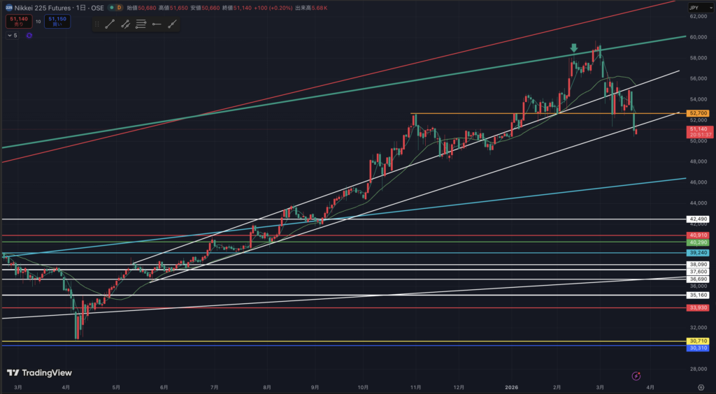 日経平均先物(ラージ)日足です。(18:53現在)