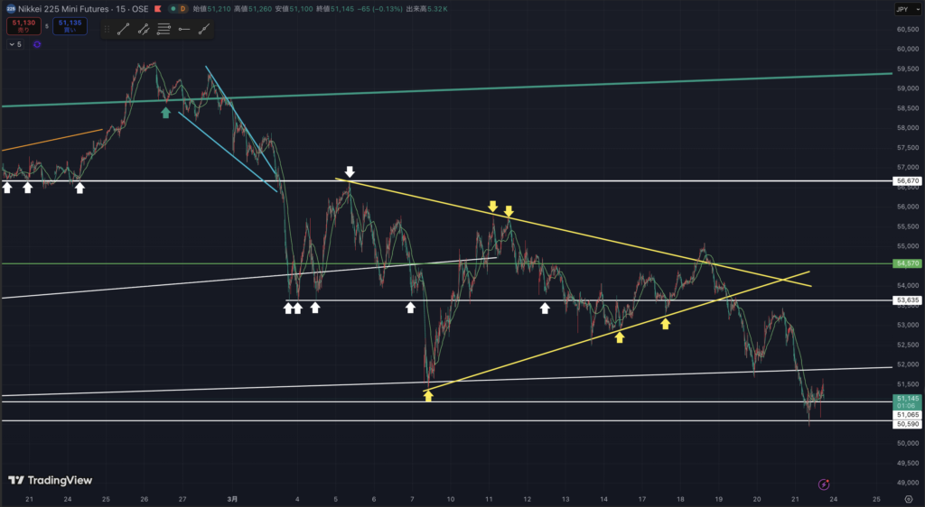 先物は先に、大事なラインを抜けたっぽい。