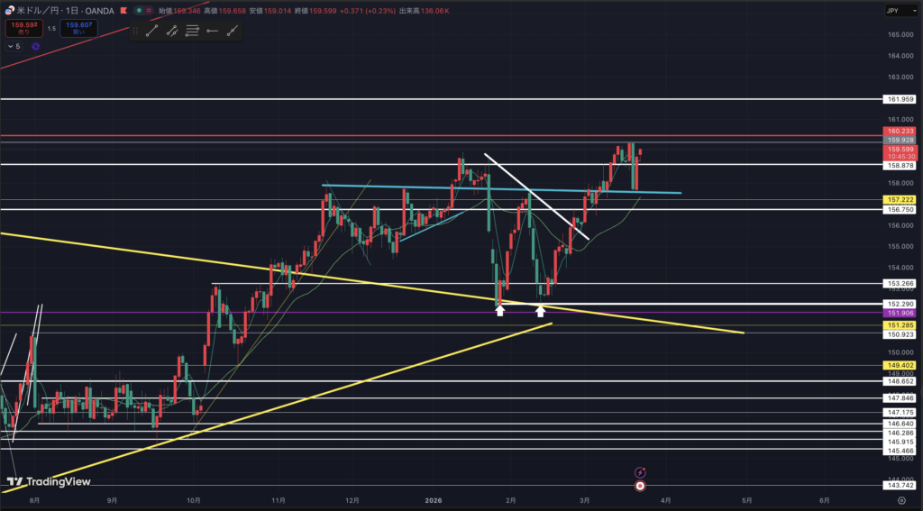 ドル円日足です。(19:14現在)