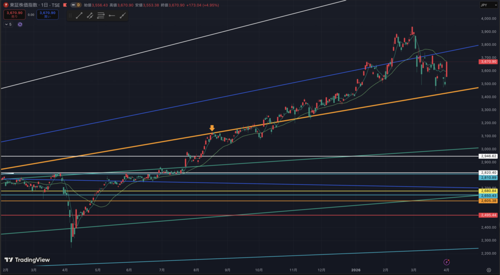 こちらも爆上げですが、ちょうど25日線で止まったようです。