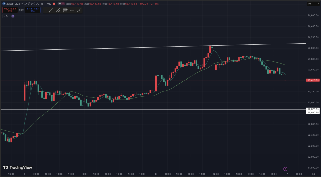 金曜日に引き続き上昇でしたが、5日線を越えられず。