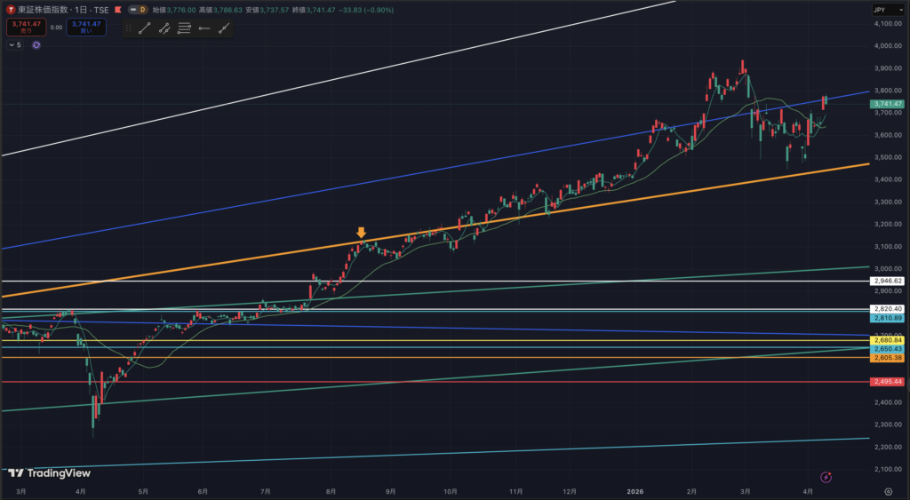 TOPIXもチャートで見る限りは下がる気配はなさそう。