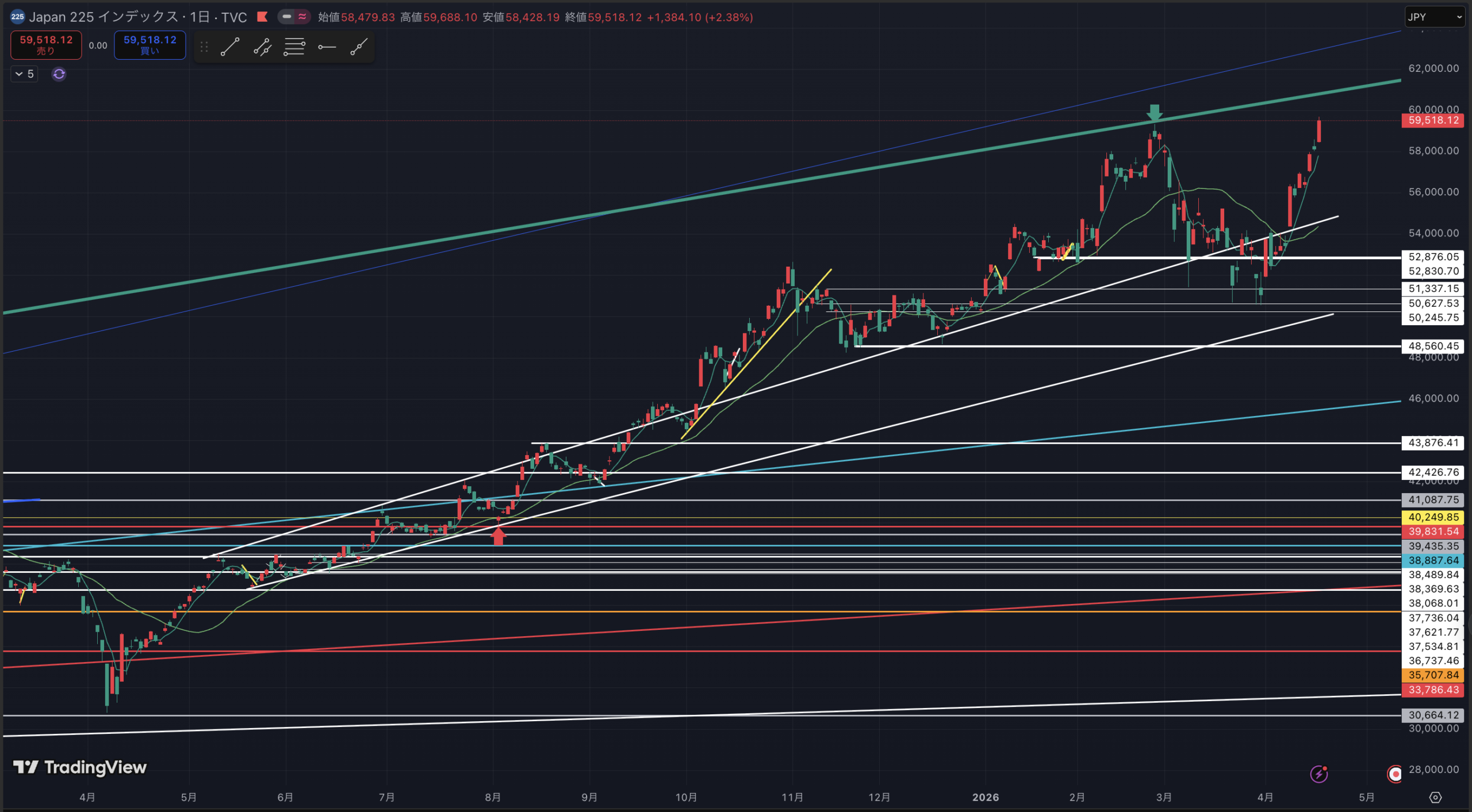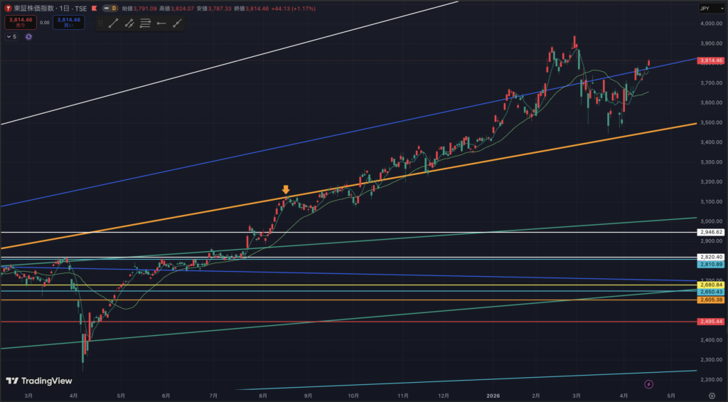 TOPIXも上昇しましたが、最高値まではまだまだ。