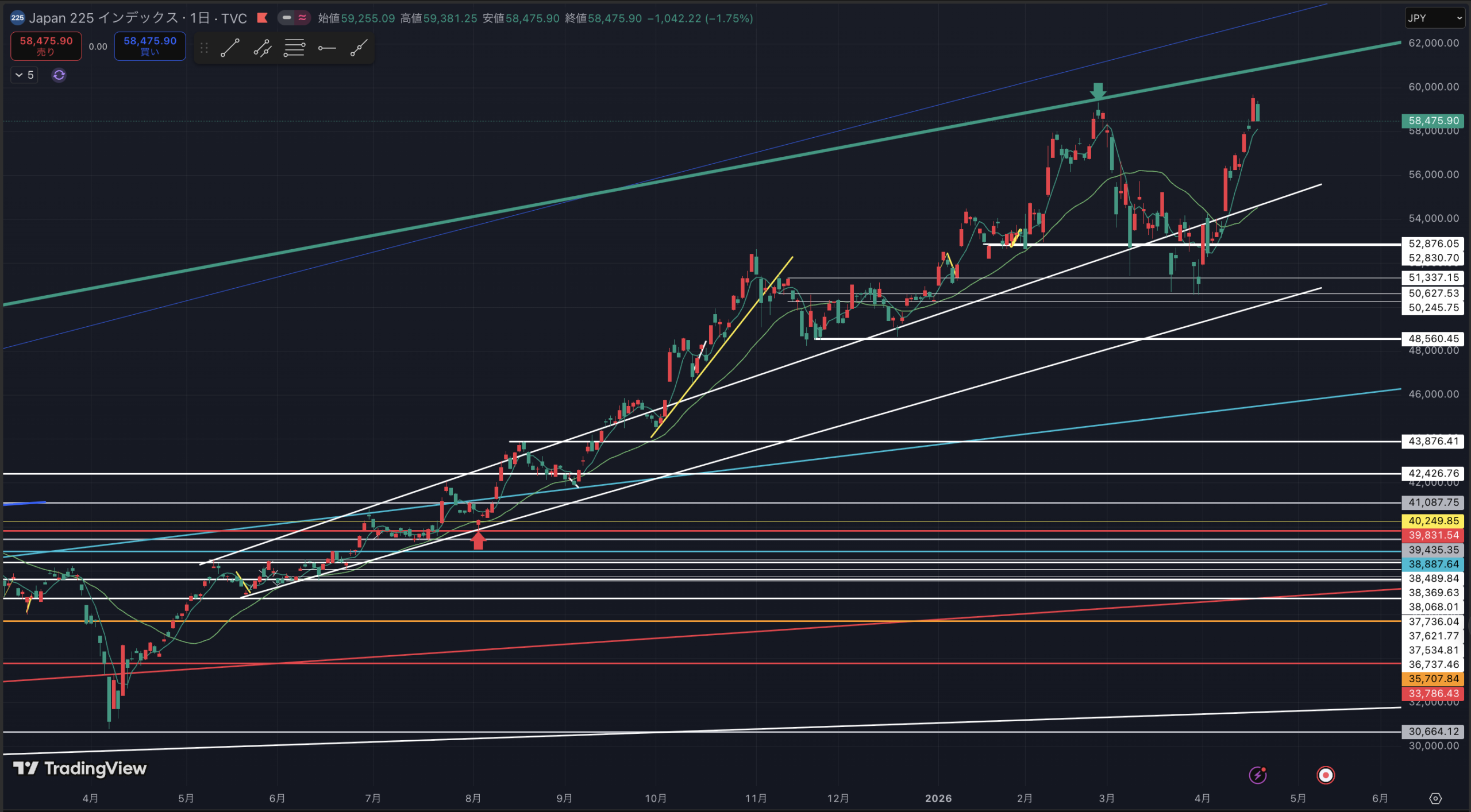 日経平均日足です。