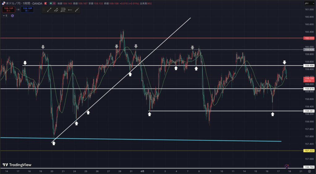 ドル円1時間足です。(18:05現在)