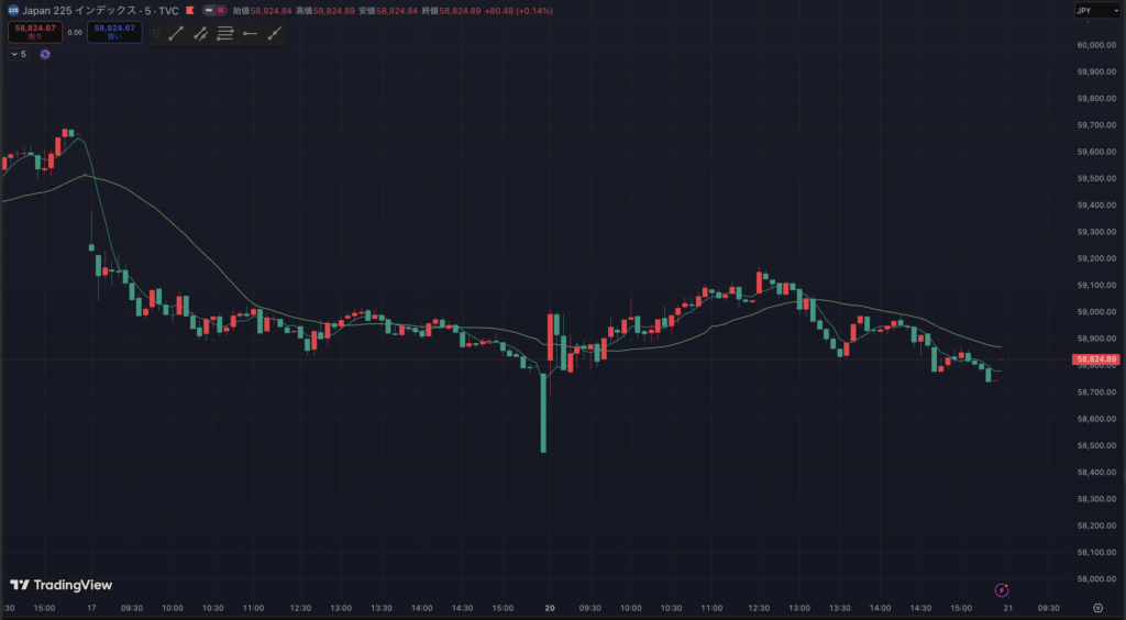金曜日の大引けの下げを寄り付きで戻しましたが、その後はボラ小さめの展開。