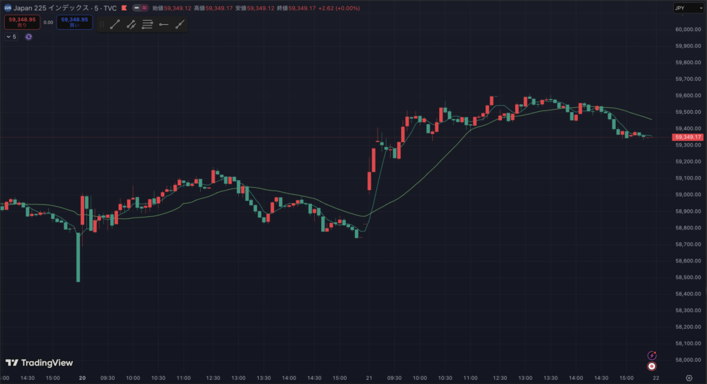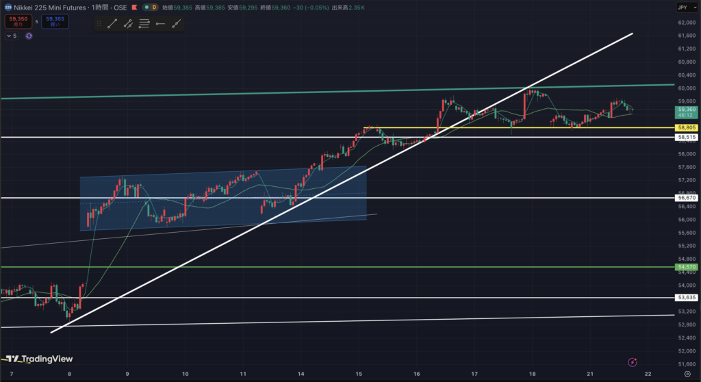 ここ数日、下値は58800円付近が堅くなってきました。
