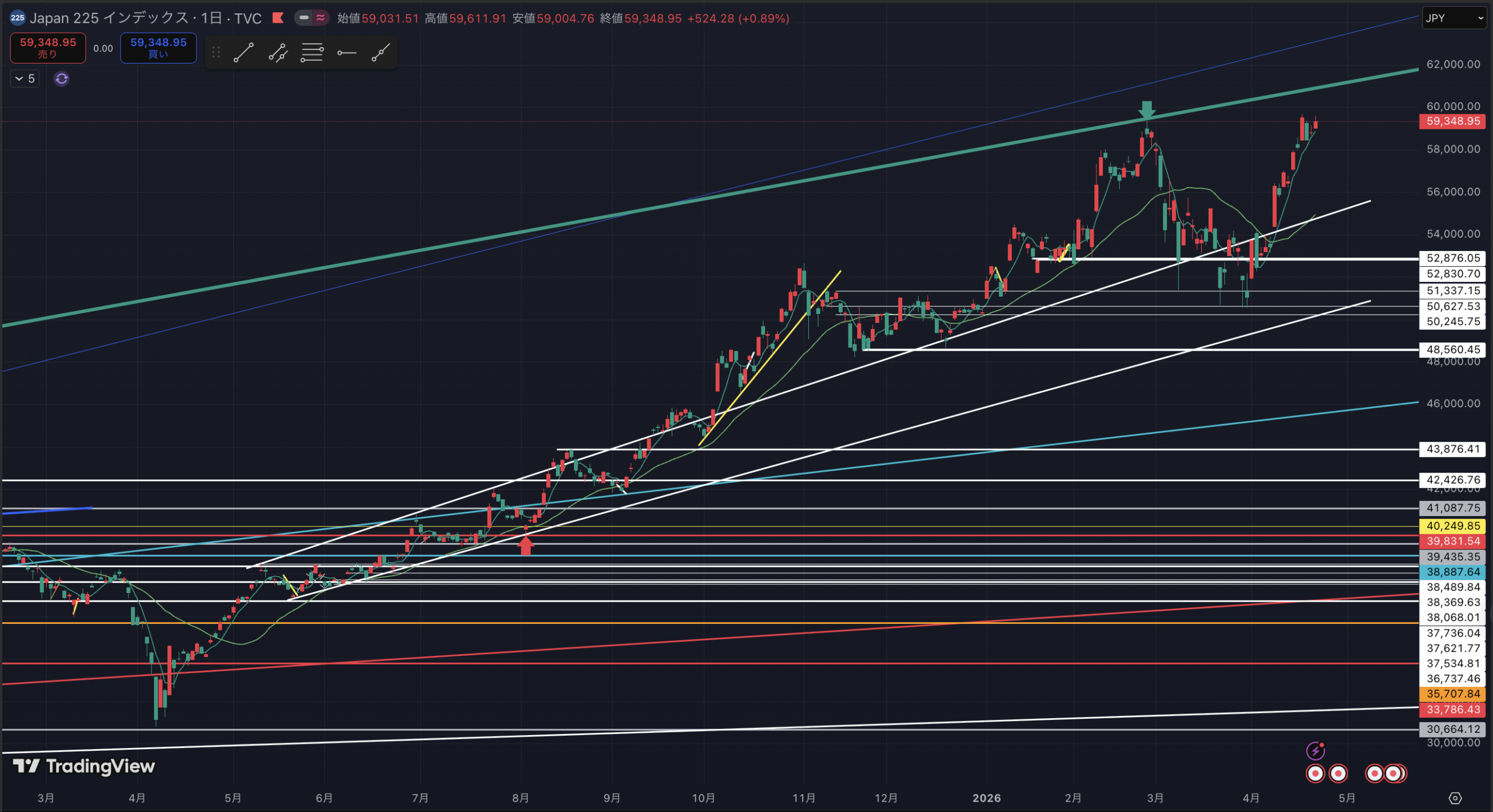 日経平均日足です。